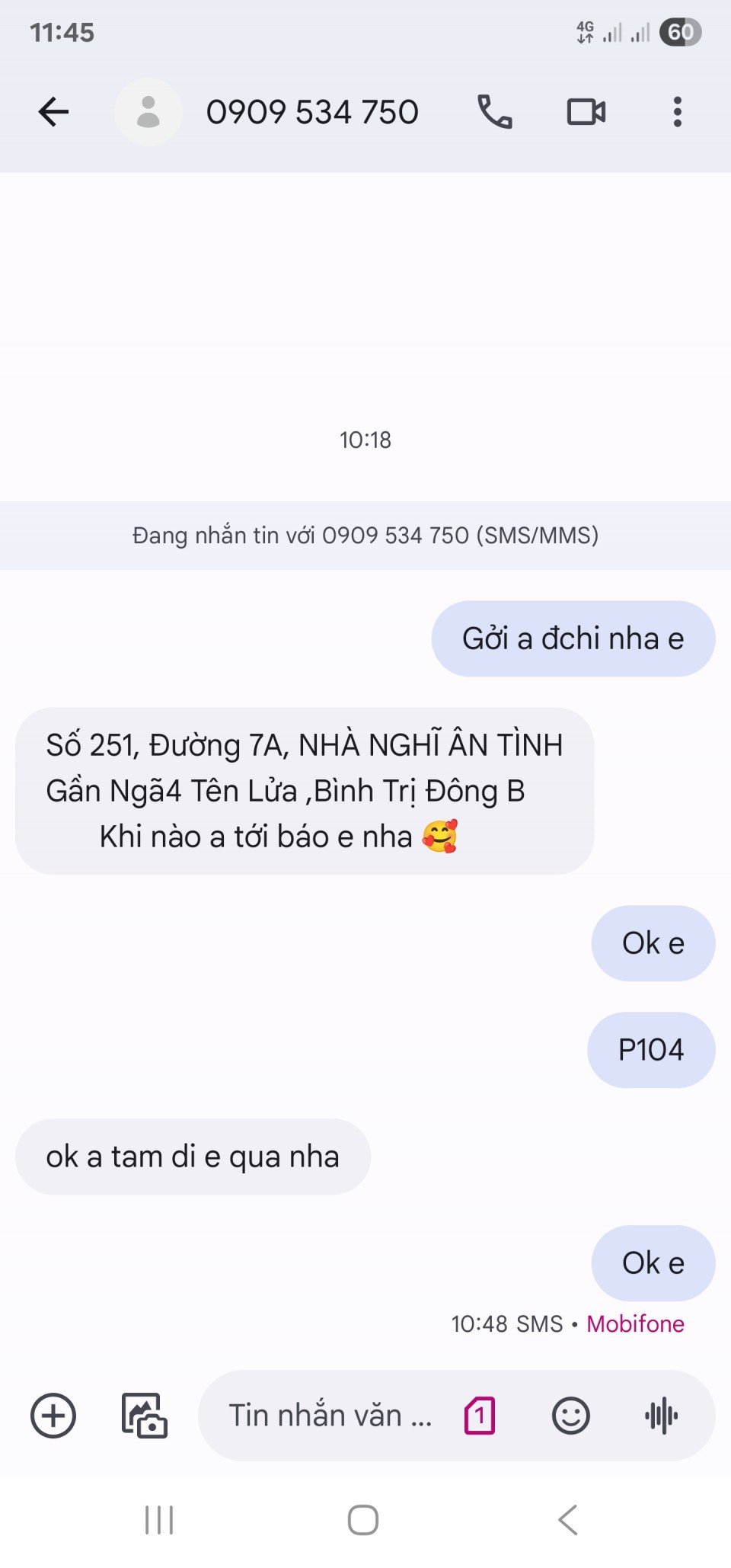 Hãy hẹn lịch và gửi tin nhắn về số phòng cho em hàng.